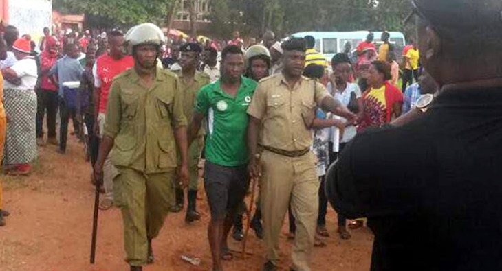 Baada ya kupigwa ngumi shabiki huyo alianguka chini na kuonekana kama amepoteza fahamu ndipo Polisi walifika na kumkamata Nyosso na kuondoka naye.